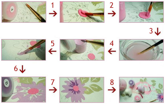 Существует довольно много техник закрашивания картин по номерам, поэтому нет однозначного ответа на вопрос, как правильно рисовать по номерам. Наиболее популярными являются описанные ниже три техники, которые используются в создание картин по номерам. Их удобство были выявлены опытным путем многими художниками на протяжении десятков лет существования такого хобби, как раскрашивание картин по номерам. Каким из трех способов нанесения красок воспользоваться зависит от выбранной картины и личных предпочтений.